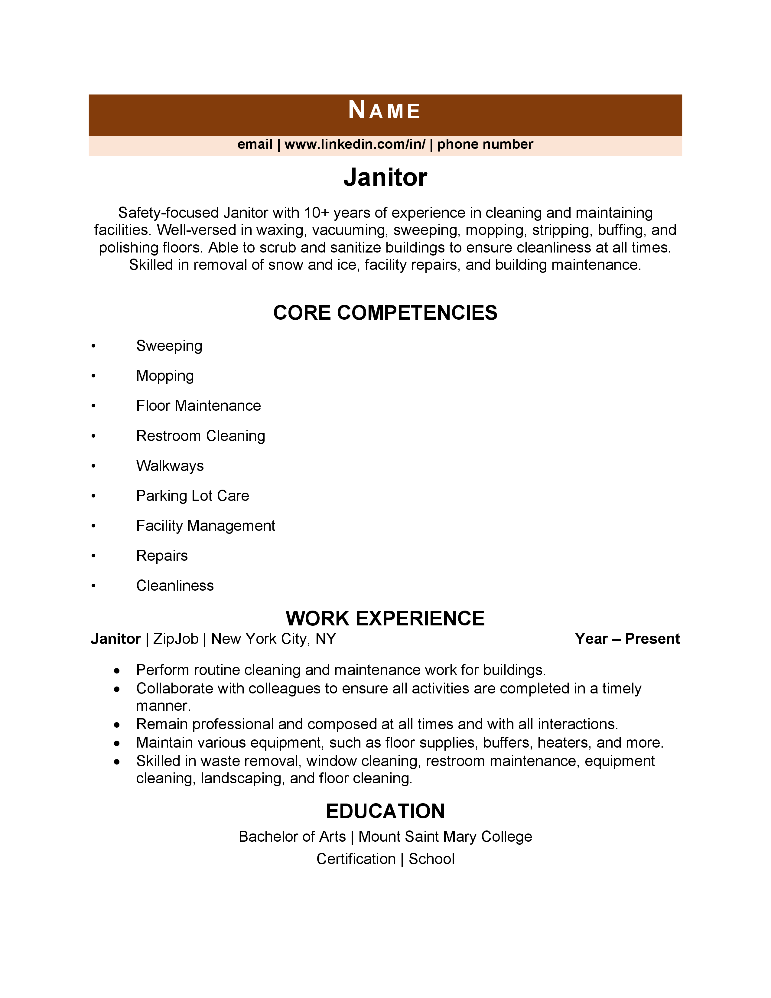 What To Put On Resume For Janitor / Even though babysitting is a less traditional job, the skills required can translate to other positions you may be seeking, whether inside or outside of child care.